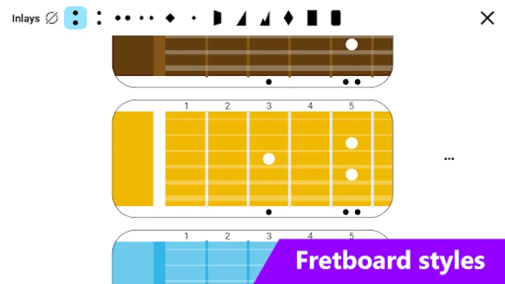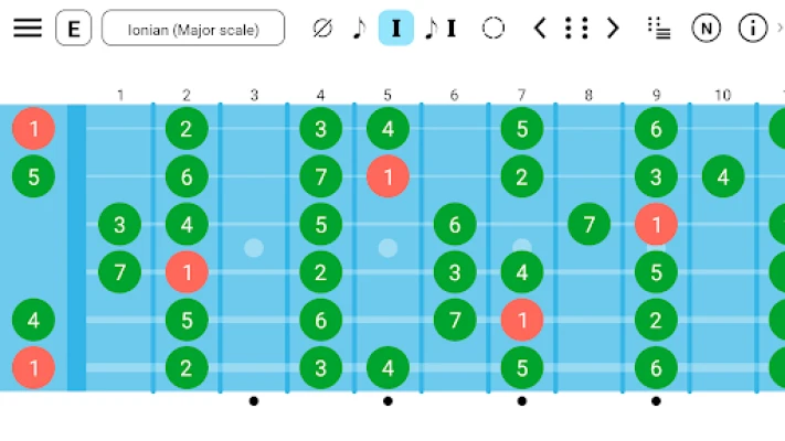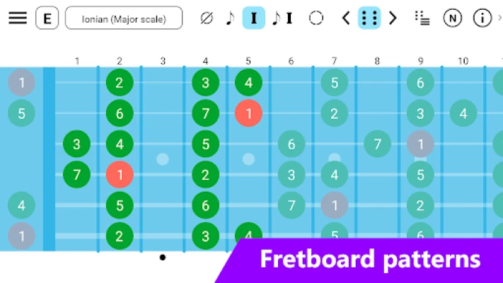 Guitar Fretboard app is designed to help you learn scales, memorize the fretboard and train your ear. Allows to customize every aspect of displaying a scale or a chord's notes/intervals on a guitar fretboard. Also shows each scale degree chords and modes with ability to highlight a chord on a scale.