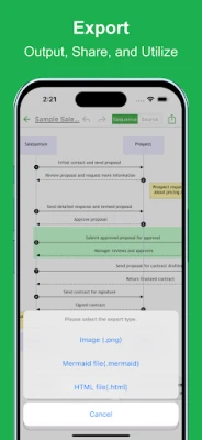 This app allows you to easily create sequence diagrams. Simply describe the content you want to visualize, and the latest AI technology will automatically generate the diagram for you.