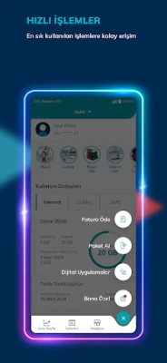 • Viewing and paying invoice details from the transactions menu, giving automatic payment orders, updating invoice sending preference and invoice contact information, accessing campaign and package details, application and appointment inquiry, automatic control of your internet connection quality, changing your wifi name and password, changing secure internet profile, etc. You can carry out your transactions quickly and safely.