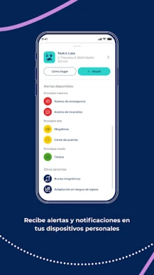 • Visualfy Places: Receive emergency and informative accessible notifications by public spaces adapted by Visualfy, just by subscribing to the building services, also free of charge. Safer and always informed in hospitals, libraries, public attention offices and other public and private buildings.
