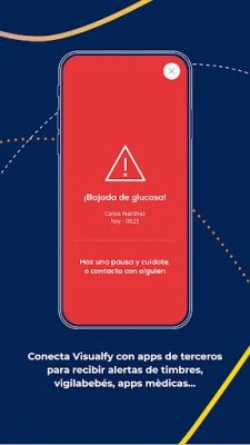 • Visualfy Home: If you have purchased our product for home accessibility, Visualfy Home, configure it easily from the app, customize the colours of the alerts, choose the devices where you want to receive them, invite your family to use it and much more.